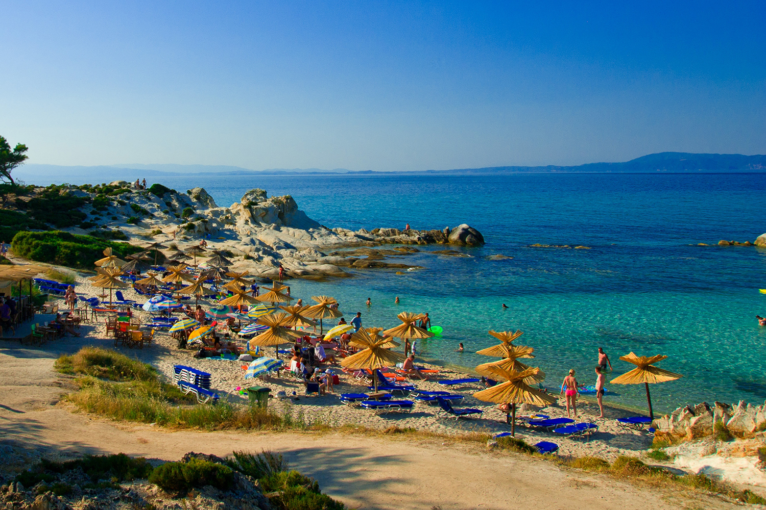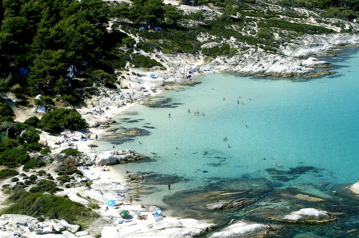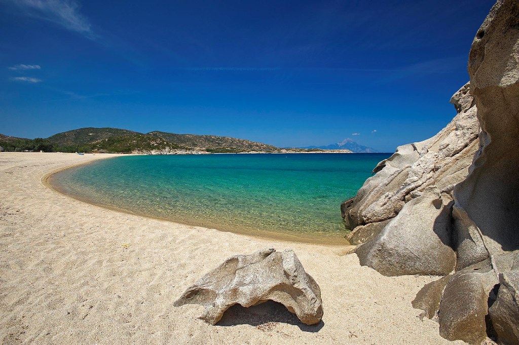Αναμφίβολα, είναι ο πραγματικός επίγειος παράδεισος. είναι μια χρυσή αμμουδιά με κρυστάλλινα, σμαραγδένια και ρηχά νερά με υπέροχη θέα στο Άγιο Όρος περιτριγυρισμένη από πεύκα και λευκούς βράχους. Είναι εν μέρει οργανωμένο και δεν είναι εύκολα προσβάσιμο, αν και πάντα έχει πολύ κόσμο.